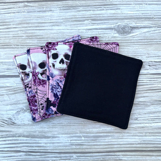 Skulls And Fall Floral Halloween Fabric Coaster Set