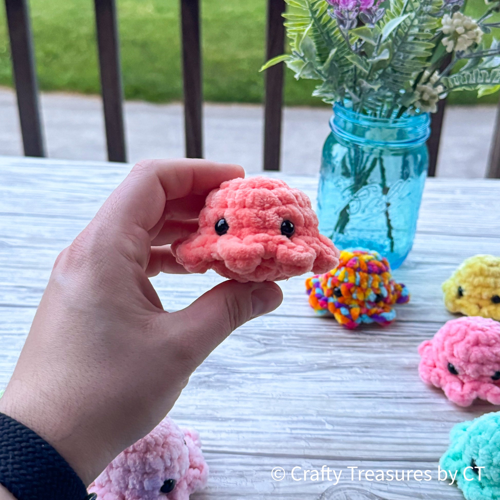 Mini Octopus plushies are created with a pattern from knotsmerryyarn on Etsy.